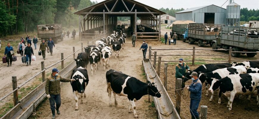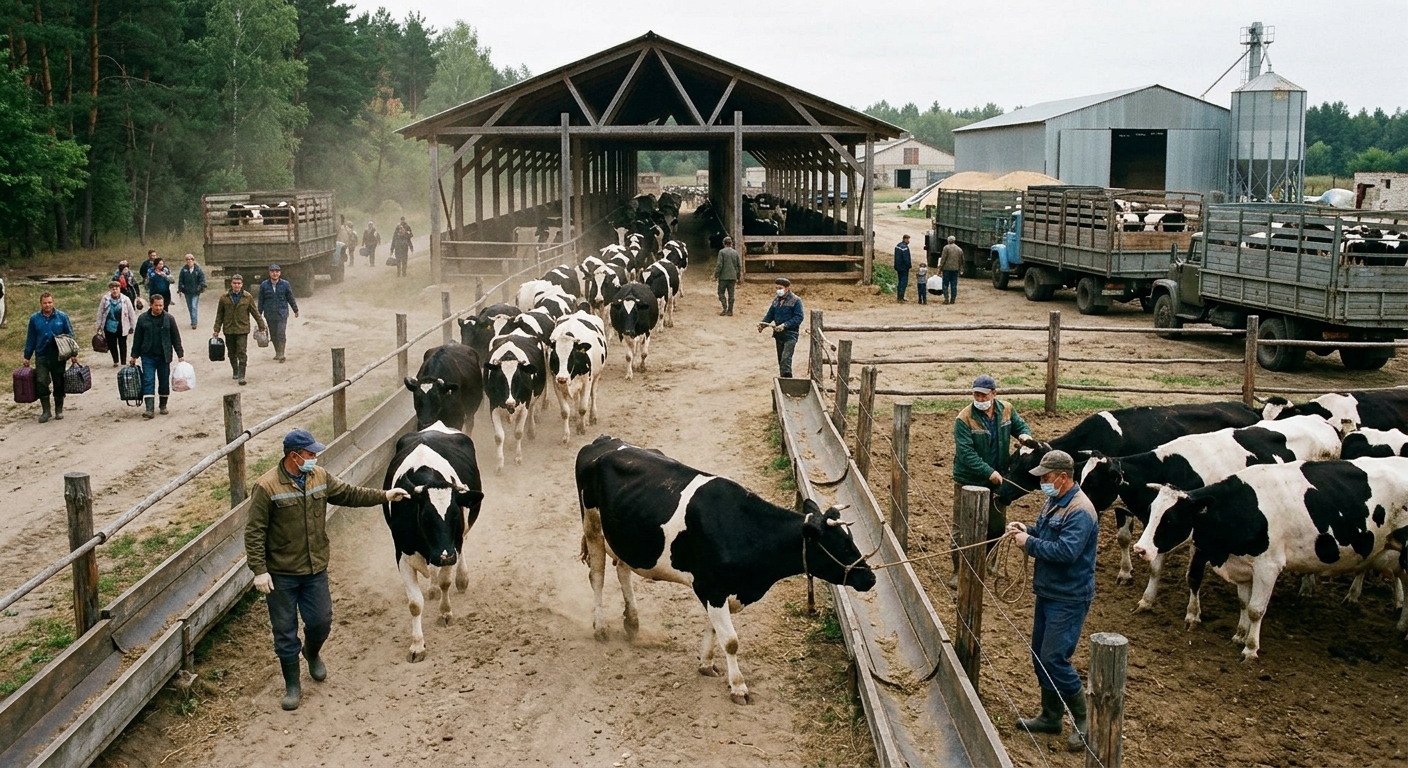 Процесс ликвидации последствий аварии на Чернобыльской атомной электростанции затронул все сферы жизни пострадавших территорий. Особое внимание уделялось агропромышленному комплексу, который оставался основой экономики чернобыльских районов. Воспоминания бывшего руководителя сельхозпредприятия «Судково», а позднее председателя Хойникского райисполкома Николая Садченко, позволяют восстановить хронологию событий. Утром 4 мая 1986 года его вызвали в райисполком с сообщением: началось отселение. Садченко должен был принять скот в совхоз «Оревичи». Люди не уезжали, пока не сдавали животных — свиней сразу отправляли на мясокомбинат, коров из частного сектора и совхоза принимали на отгонное пастбище в урочище Белки. Ещё два месяца после отселения существовал совхоз «Оревичи», затем поголовье также отправили на мясокомбинат. 5 мая началось массовое отселение жителей из 10-километровой зоны, затем из 30-километровой.