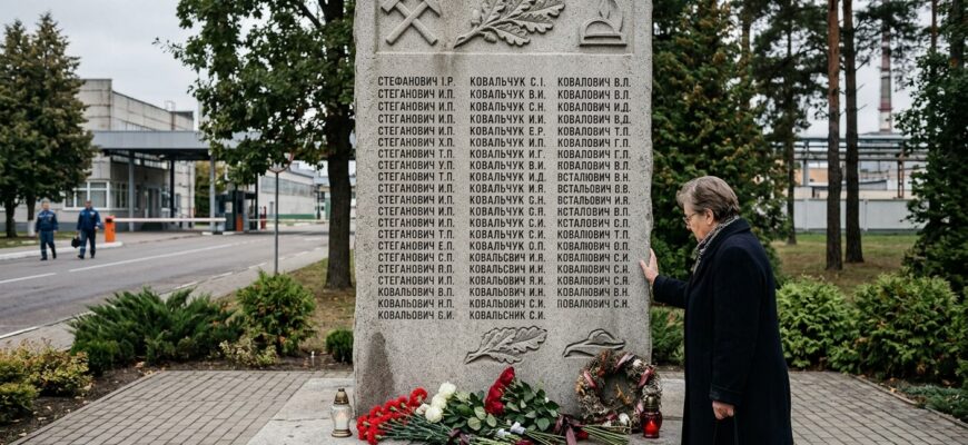 На стеле у транспортной проходной Тампонажного управления объединения «Белоруснефть» выгравировано 108 фамилий работников, которые в первые дни аварии на Чернобыльской АЭС отправились на станцию. Прошло 40 лет. Многие из них уже ушли из жизни.