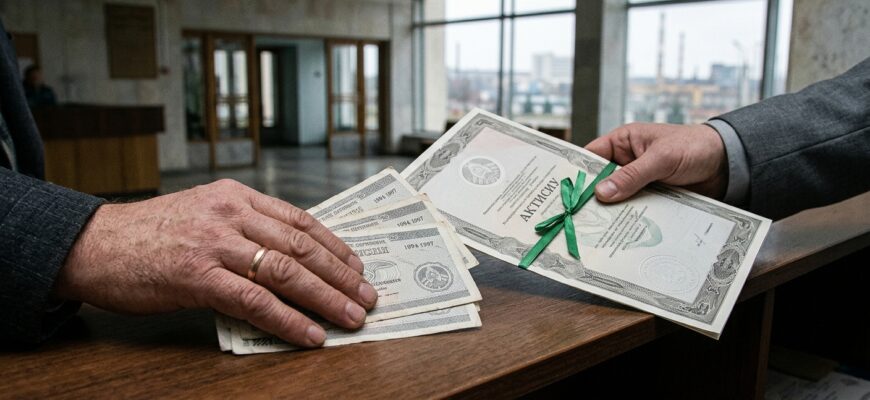 По данным комитета «Гомельоблимущество», жители Гомельской области использовали 35 млн именных приватизационных чеков «Имущество» для приобретения акций открытых акционерных обществ. Чеки этого типа выпускались в Беларуси с 1994 по 1997 год и были обеспечены государственной собственностью. За период выдачи жители региона получили 69,7 млн таких чеков.